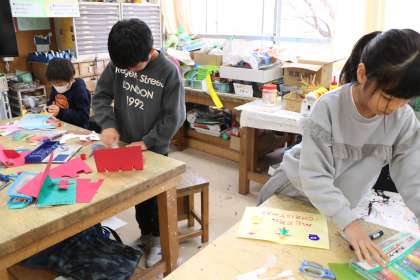 飛び出すカードは、家族のため、友達のためあて先はそれぞれが考えているそうです。心のこもったカードが完成するようです。