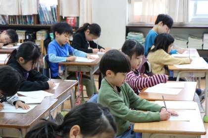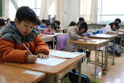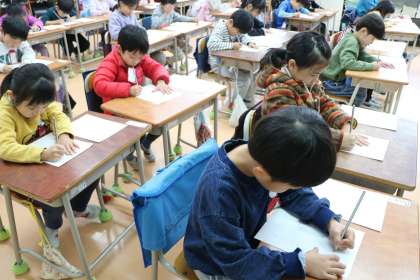 姿勢、鉛筆のもち方など確認し、『消しゴムを使わない!!失敗しない!!』を目標に書いています。