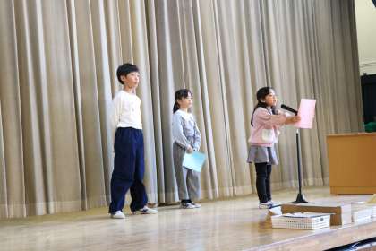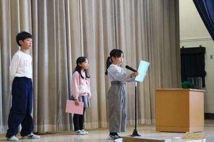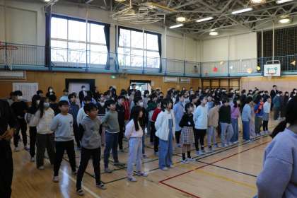 終業式が始まりました。6年生1クラスが学級閉鎖中で少し寂しい終業式です。1月、全員元気にまた会えることを楽しみにしています。