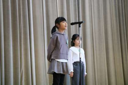 児童代表の言葉は4年生です。3学期に頑張りたいことを堂々と述べました。