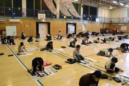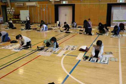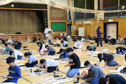 書き初め用ではない、いつものサイズの半紙を使って、文字の形を一文字ずつ練習したり、小筆で名前を書く練習をしたり、自分が練習したいことを考えながら取り組みました。