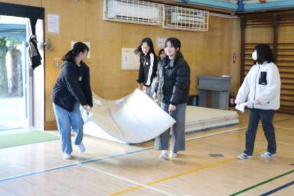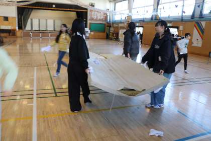 6年生が展覧会に向けて体育館の設営準備をしました。
