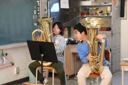 同じ楽器どうし、声をかけ合って練習しています。