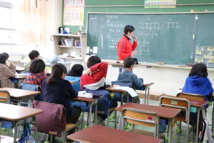 教室では、落ち着いて3学期の学習が始まっています。写真は3年生・算数の様子です。