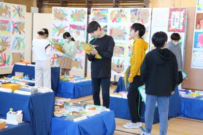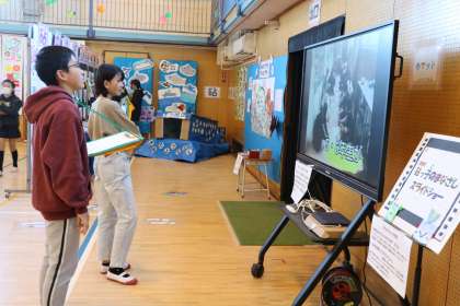 制作過程の写真を集めたスライドショーがテレビに映し出されています。BGMが6年生の鼓笛演奏なのでそれも興味深いです。