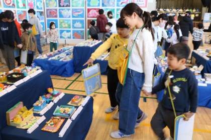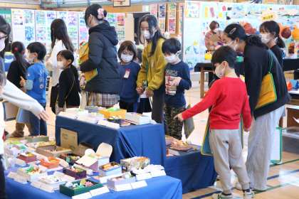 砧小学校では、学年だけで鑑賞する時間と、異学年で交流しながら鑑賞します。