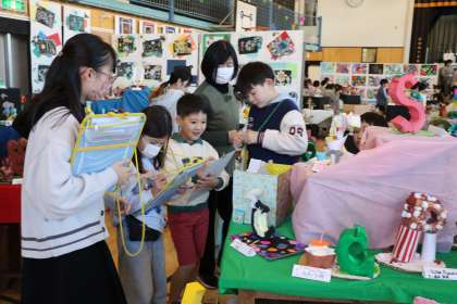 とっても優しい顔で2年生と一緒に鑑賞する5年生です。