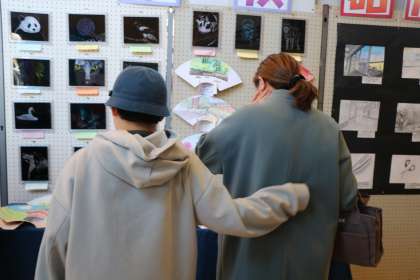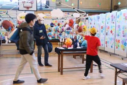 そして下校時刻の頃から、親子で観てくださる方がいらっしゃいました。自分の作品や自分が気に入った異学年の作品、友だちの作品も紹介していました。