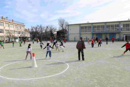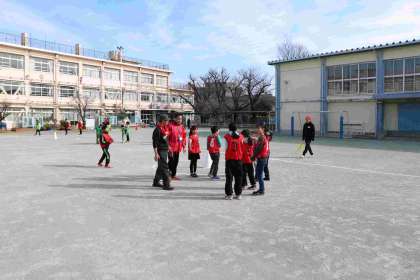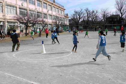 大学生ボランティアの方が分かれてチームに入ってくれて、世田谷区スポーツ推進委員の方もアドバイスをしてくださり、作戦を話し合ってゲーム開始です。
