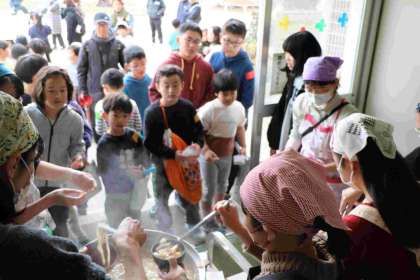 終わった後は、保護者の方たちが作ってくれた、温かい煮込みうどんをいただきました。