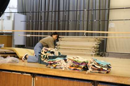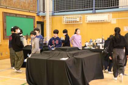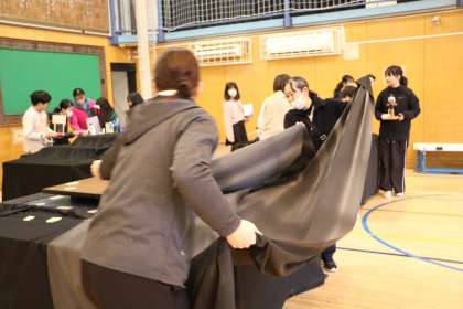 体育館復旧作業は5年生が担います。これまで学校行事の会場づくりはすべて6年生が行っていましたが、その仕事も5年生に引き継ぎます。それでも、5年生が作業しやすいように6年生が少し、力を貸してくれているのです。