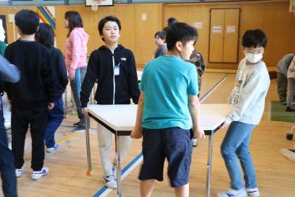 5年生は3学期始まってすぐ体育館でやった書初め大会に取り組む姿がとても立派でした。自分たちで静かに集中する雰囲気を作り出し、互いに高めあう姿が見られました。高学年としての自覚にあふれた空気が、とても素晴らしかったということを、先生も話していました。今日はさらに自分たちで考えて、気持ちよく学校のために力を尽くそうと意欲みなぎる顔つきで話を聞き、作業に取り組んでいます。頼もしい次期最高学年です。