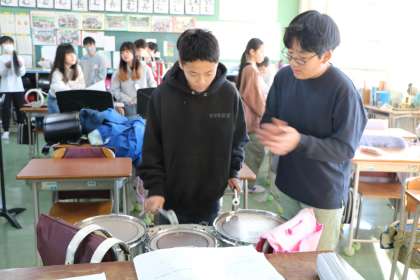 6年生がリズムを取ったり、「できたよ!できた!いいよ!!」と一緒になって喜んでくれたりするので、5年生もめきめき上達しています。そしてなにより、5・6年生ともにとっても暖かくいい表情で練習しているのです。