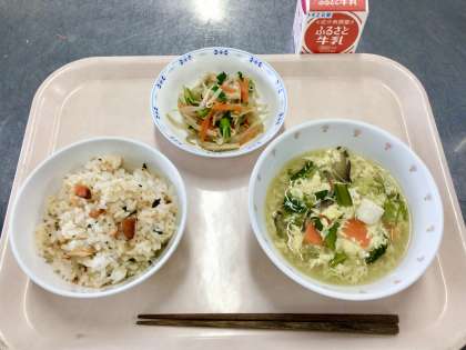 鮭のあけぼの寿司は鮭を焼いてほぐした後に、わかめとゴマと一緒に酢飯にまぜて作りました。2枚目の写真のように、鮭は焼いた後に丁寧にほぐして、ごはんにまぜています。