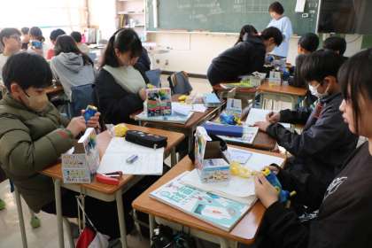 6年生理科「わたしたちの生活と電気」の様子です。手回し発電機や光電池など、電気を作り出すことについて学習しています。