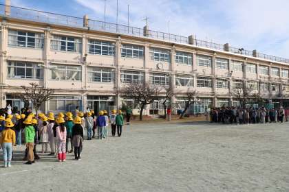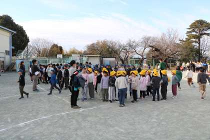 コロナ禍前は全校で取り組んでいましたが、密を避けて学年ごとにしていました。持久走も始まるこの時期ぜひたくさん外で遊んで体力向上を図ってほしいと考え、全校一緒の朝遊び、ランランランくを復活させました。久しぶりの全校一緒の取り組みなので、全員で安全のための約束事を確認し、今日は1分間走りました。