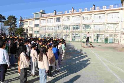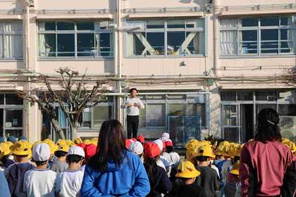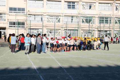 今日は、昨日に引き続き、全学年でのランランランの仕方を確認するために体育朝会を行いました。