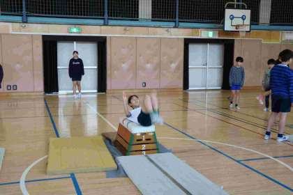 6年生の跳び箱は「台上前転」への挑戦でした。