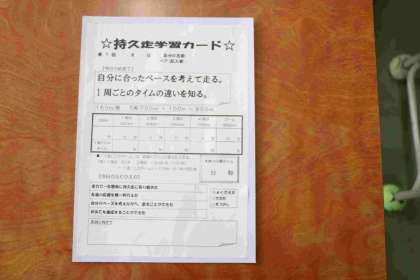 長い距離を一定のペースで走ること、そのための自分に合ったペースを見つけること、ペースを探るための学習と記録の仕方を教室で学習しました。