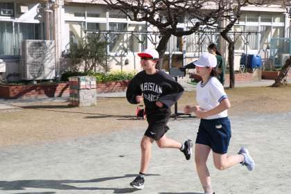 6年生は1000メートルを走ります。心地よさを感じながら走り自分のタイムが少しでも縮まることが目標です。そして周りの応援も大切です。