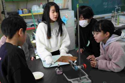 マッチの火のつけ方、アルコールランプの使い方など、先生の知識と経験から実験器具の使い方が適切に指導されていました。