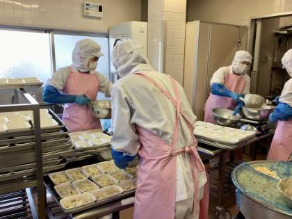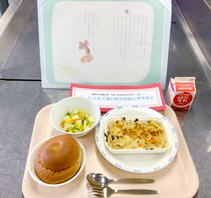 こどもたちが楽しみにしていた「お話給食」も今日が最終日です。今日は「こまったさんのグラタン」をイメージしたマカロニグラタンです。給食室でホワイトルウから手作りして、オーブンで焼き上げた熱々のマカロニグラタンはこまったさんのグラタンに負けないくらいおいしくできました。