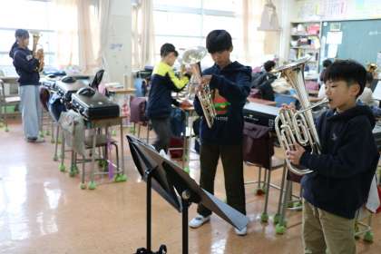 5年生鼓笛練習の様子です。朝練習のために、早起きしているのは子どもたちだけでなく、ご家族みんなの支えがあってのことと思います。ご協力ありがとうございます。5年生頑張っています。