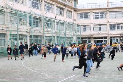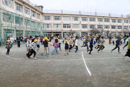 全校朝のランランランの様子です。1年生の昇降口の近くには赤い線で横断コースが描いてあります。1年生が途中から、走っている中に入るときの目安なのですが、5・6年生が本当に優しくて!入りたそうにしている1年生のためにスピードを落として優先的に入れてくれています。周りに配慮しながら自分のことも一生懸命やるということは、なかなか高度なことです。それができる砧小の高学年、その様子を見て自分たちもそうしようとする中学年は素晴らしいです!!