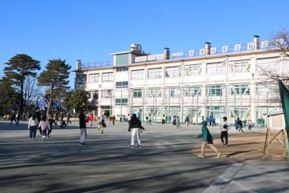 校庭の松の木の間から、西校舎の廊下から、富士山がくっきりきれいに見えます。