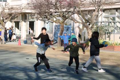 今日は特別時程だったので朝のランランランはありませんでしたが、朝から元気に外遊びをしに校庭に出てきています。