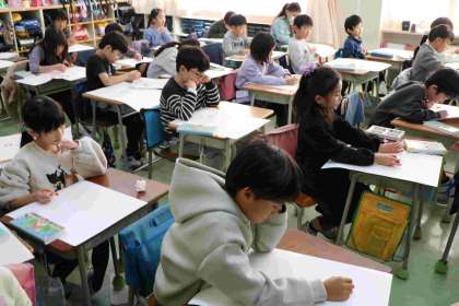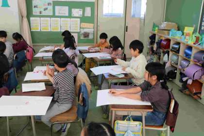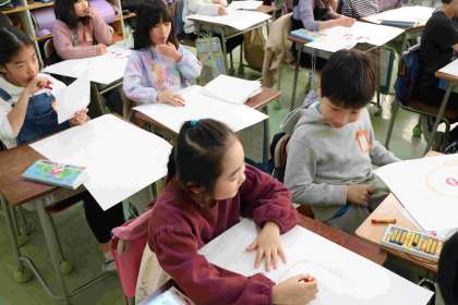 「手でよくさわって描く」ことを先生が声かけしました。みんなよく顔を触って、どういう形なのか感じながら描けました。