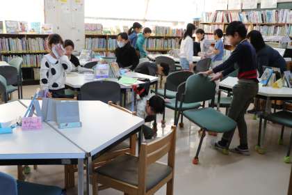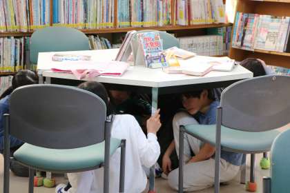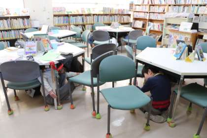 図書室にいる子たちも、放送をよく聞いて行動していました。