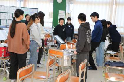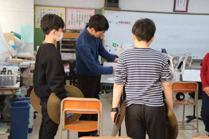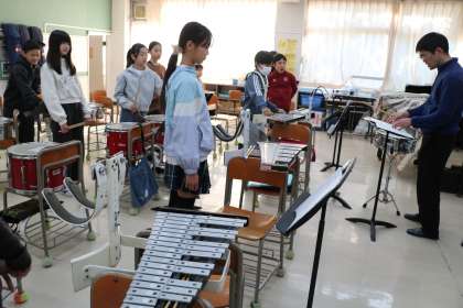 今日は5年生がプロの演奏家の皆さんをお迎えして、楽器ごとにレッスンを受ける日です。
