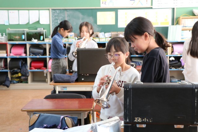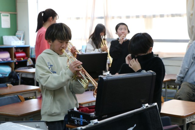 2/14 6年生から5年生へ鼓笛引継ぎ最終ー6