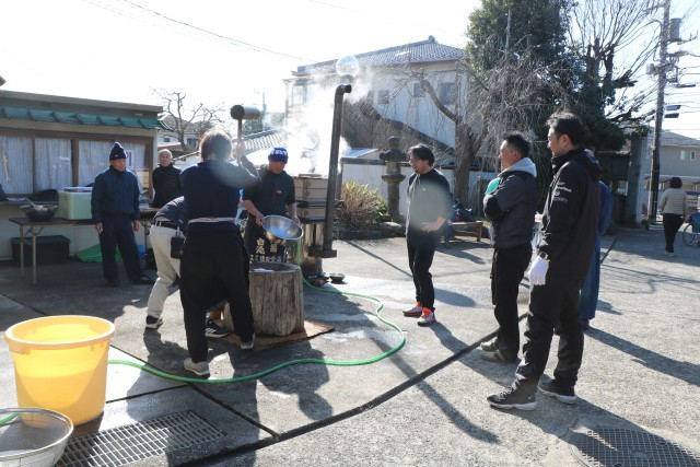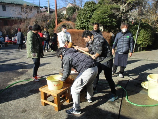 今日は妙法寺の二の午祭です。朝早くから地域の皆様が餅つきの準備に集まっていらっしゃいます。砧小学校では毎年、二の午祭に、1・2・3年生が二の午祭にお邪魔して、昔遊びを楽しんだりお餅をいただいたりしています。