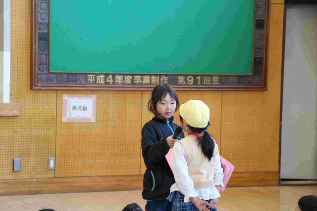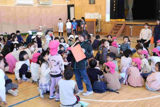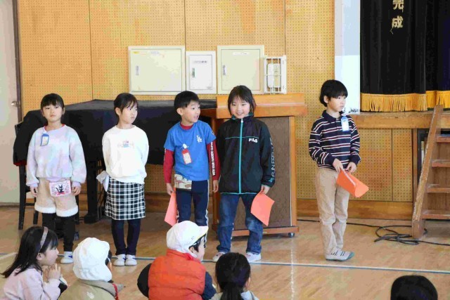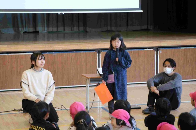 こちらも1年生代表の司会グループが立派に進行してくれました。幼稚園・保育園の子たちに感想を聞きました。「ドキドキした」「楽しかった」気持ちが聞けて1年生も嬉しかったですね。