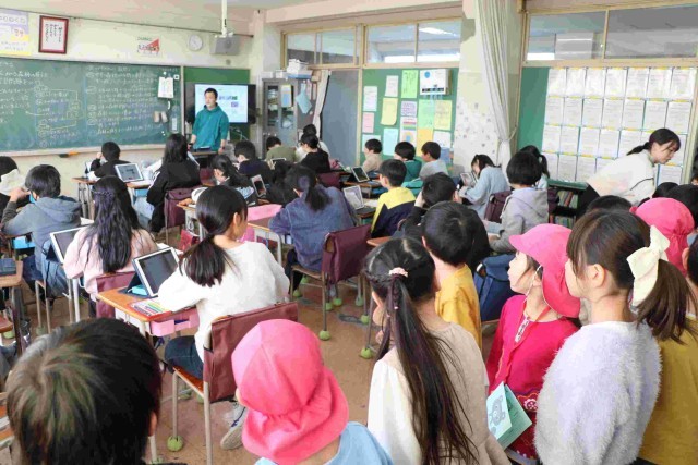 移動中には、1学期から交流してきた5年生のクラスの前も通りました。教室の中に入れてもらい、5年生が静かにお勉強しているところを見ました。一緒に遊んでくれた5年生は見つかったかな?