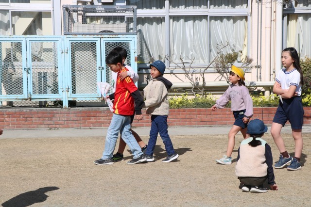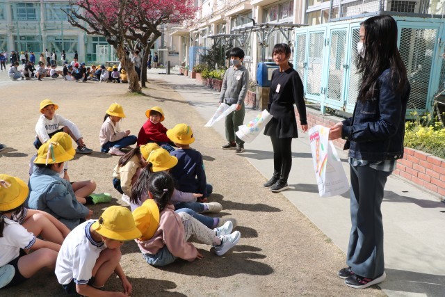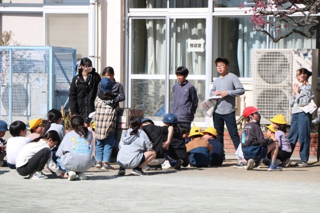 最後に集まって振り返りをしている様子です。今日遊んで楽しかったこと、1年間一緒に活動して楽しかったことなど、たくさんの感想が出ていました。