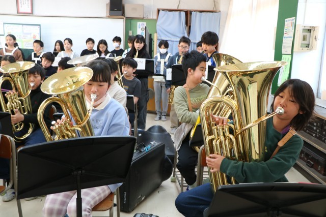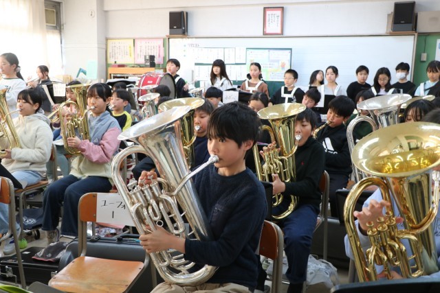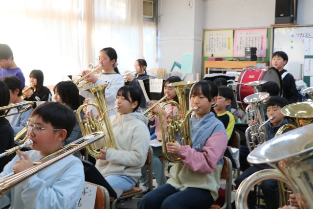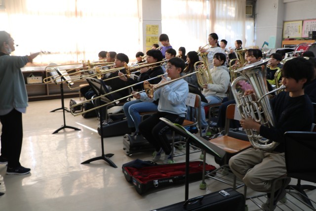 木曜日5年生鼓笛朝練習初めて音楽室で全楽器合わせての練習でした。みんなで合わせると、それぞれの楽器の音がとってもよくわかります。主旋律もしっかり演奏できていました。リズムも狂うことなく打楽器がよい演奏をしていました。全部の音が聞こえる心地よさ、楽しさを子どもたちも味わっていたことと思います。