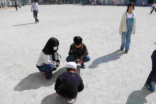 校庭の砂にお絵かきしているのも、5年生は優しく見守ってくれています。