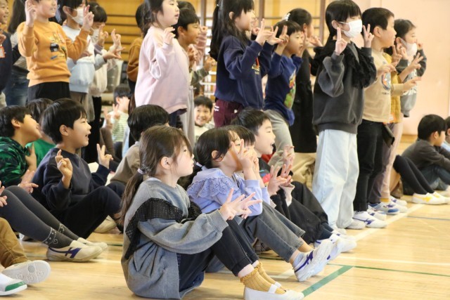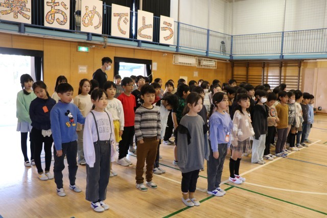 2年生が6年生を送る会の最終練習をしている様子です。6年生を送る会が1週間延期になったので、予定外に学年練習ができました。明後日の本番は、6年生に喜んでもらえるように頑張るそうです。