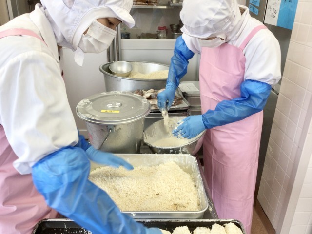 フィッシュサンドの魚は真鱈を使っています。自分でパンに挟んで食べます。ABCスープはアルファベットや数字の形のマカロニが入ったスープです。子どもたちはスープの中から自分の名前に使うアルファベットを探して楽しんでいました。
