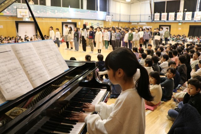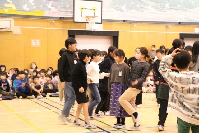 4年生の様子です。4年生は素晴らしいピアノ演奏をBGMにメッセージを伝えたり、ダンスを一緒に踊ったりしました。