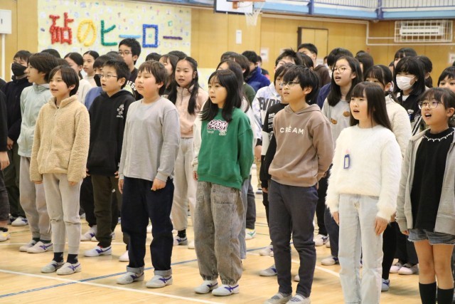 5年生の様子です。5年生はさすが!抜群の演技力で6年生、会場のみんなを沸かせました。担任の先生も見守る中、合唱「すてきな友達」もしっとり心に響く歌声でした。