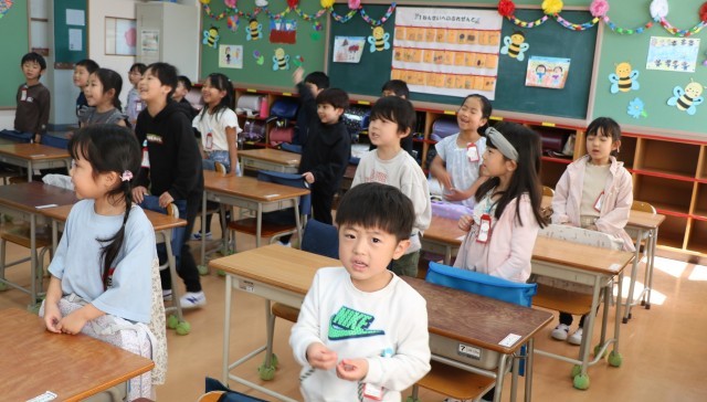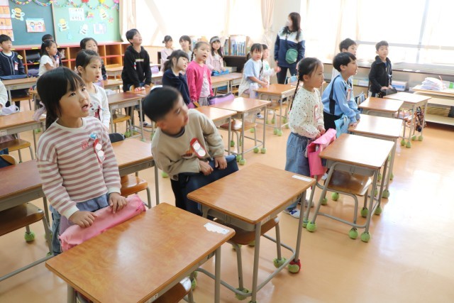 1年生の教室順番に音楽専科の先生が来てくれて、歌の練習をしました。金曜日に1年生を迎える会があります。歓迎の楽しい催しを2~6年生のお兄さん・お姉さんが企画しています。1年生もそのお礼に言葉と歌を披露することになりました。当日の様子は、bandアプリを通して後日配信する予定です。楽しみにしていらしてください。