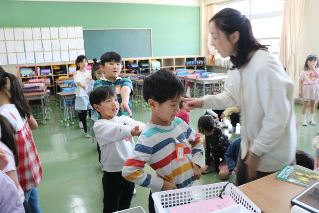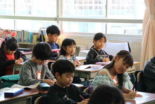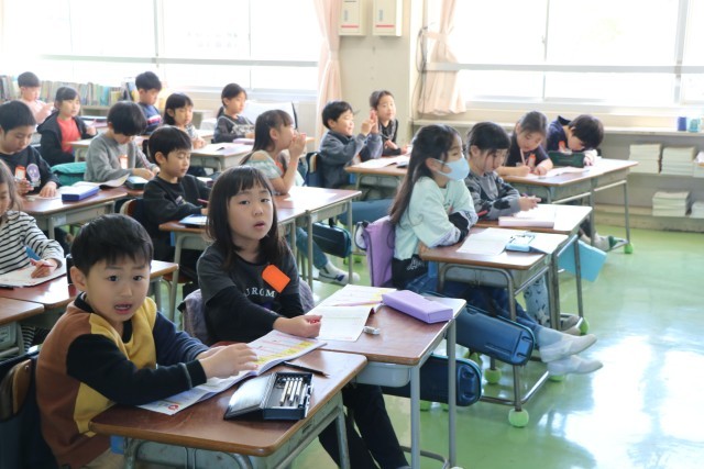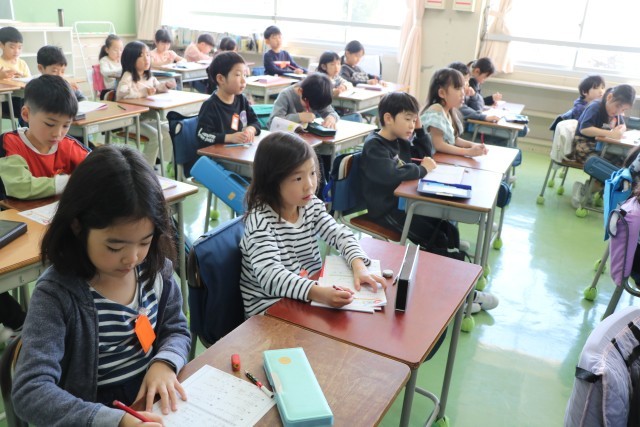 2年生の様子です。漢字の復習をしたり、新しい教科書を揃えたり、国語「ことばのじゅんびうんどう」の学習で友達と声をかけあって活動したりしている様子です。