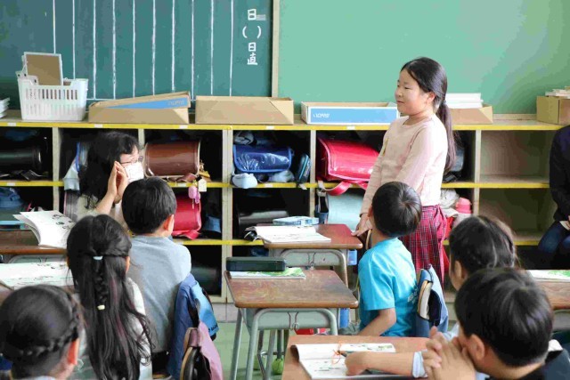 さらに隣の子が・・・と続いていきました。自分の紹介だけでなく、友達の紹介もよく聞いていないとうまく話せないので、みんな集中して聞き合っていました。
