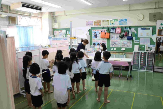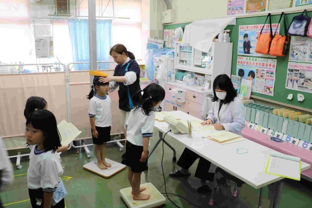 今日は全学年、計測をしました。1年生は小学校で初めての計測です。保健室も初めての子がほとんどだったでしょう。静かに過ごす場所なので、黙って並び、身長・体重を測りました。終わった後も廊下で静かに並んで待っていました。合格です!