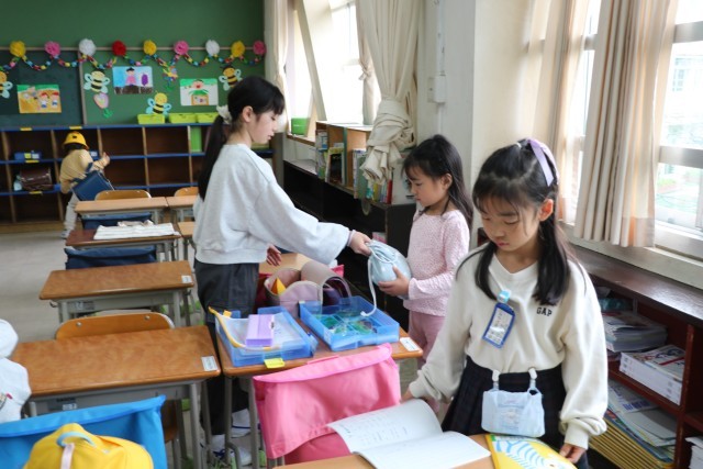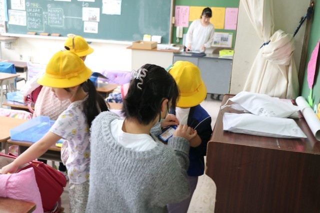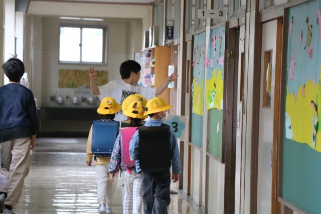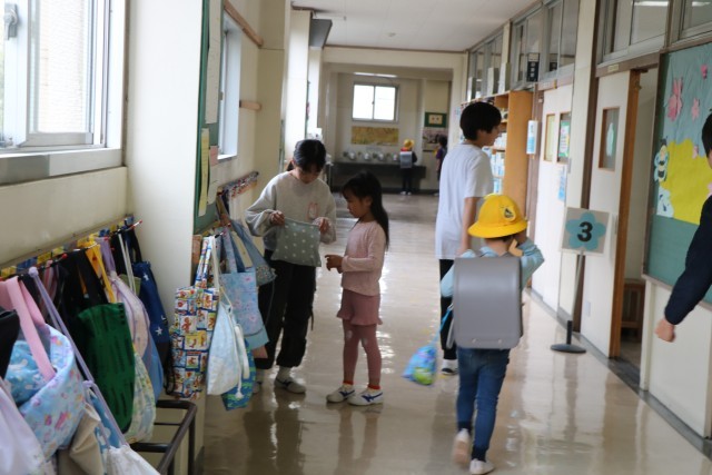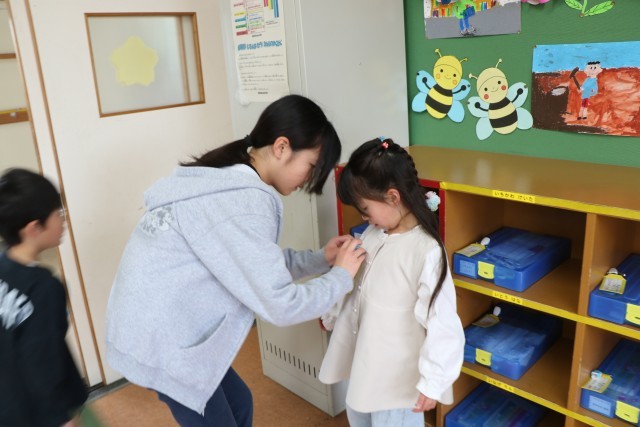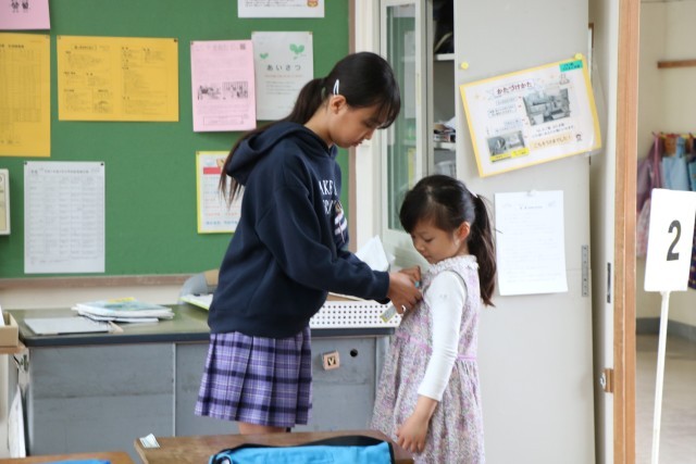 今朝も6年生が1年生の昇降口に待っていて、声をかけたり手伝てあげたりしています。何でもやってあげてしまうのではなく、1年生の様子を見ながら、自分でできることは任せ、困っているかな?という時に手を差し伸べています。6年生の優しい目で見守りながら、1年生は一人でやれるようになっていきます。