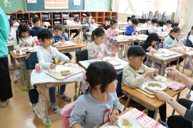 お味はどうだったでしょうか。子どもたちに一番人気の砧っ子カレーライスです、ぜひ、感想をお聞きになってください。「こんにゃくサラダがおいしい!」という声がたくさん聞こえました。